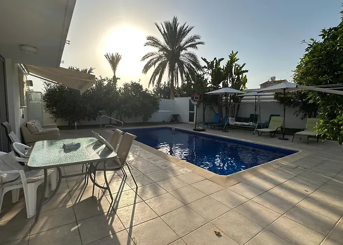 Située à 50 mètres du Galu Seaside et à 6 km du Château médiéval de Larnaka, la villa offre hébergement à Larnaca. Cette villa est située dans une zone de plage de Larnaca. Le Galu Seaside et les Pelagos Mediterranean Bar & Grill Restaurant sont à 5 minutes de marche de la propriété.